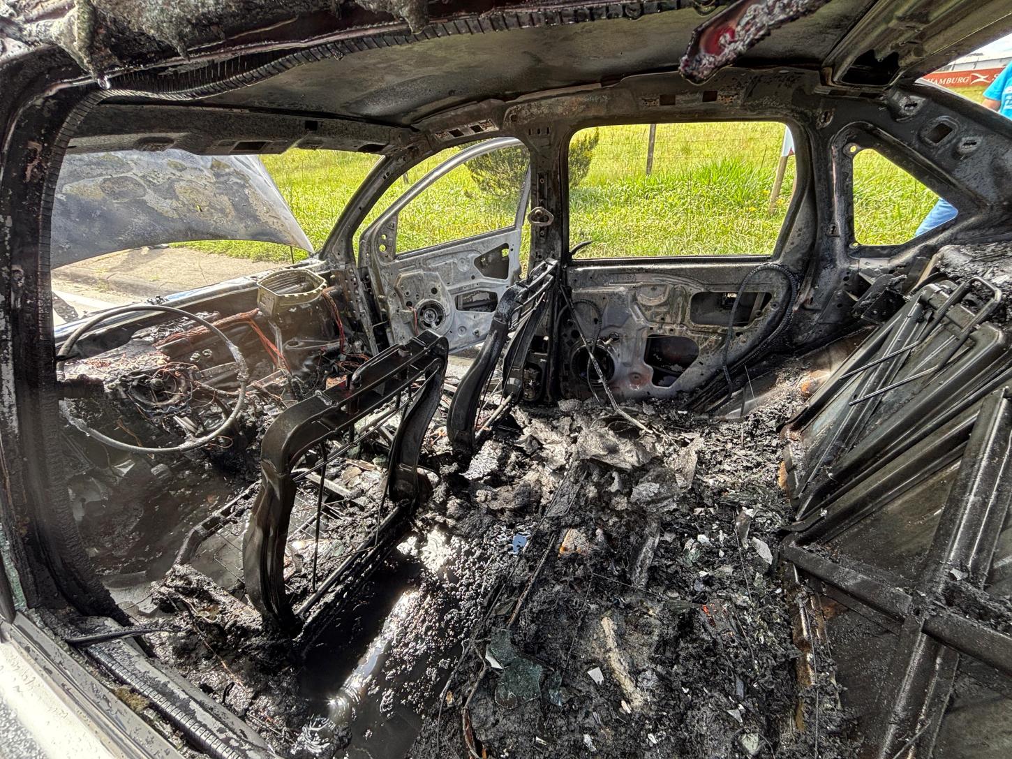 O veículo envolvido, um Ford Fiesta Sedan 1.6 Flex 2013 de cor prata, estava em chamas, com fogo consumindo todas as partes internas e o compartimento do motor. Os bombeiros utilizaram cerca de 1500 litros de água para combater o incêndio e realizaram o rescaldo para garantir a extinção completa dos focos.