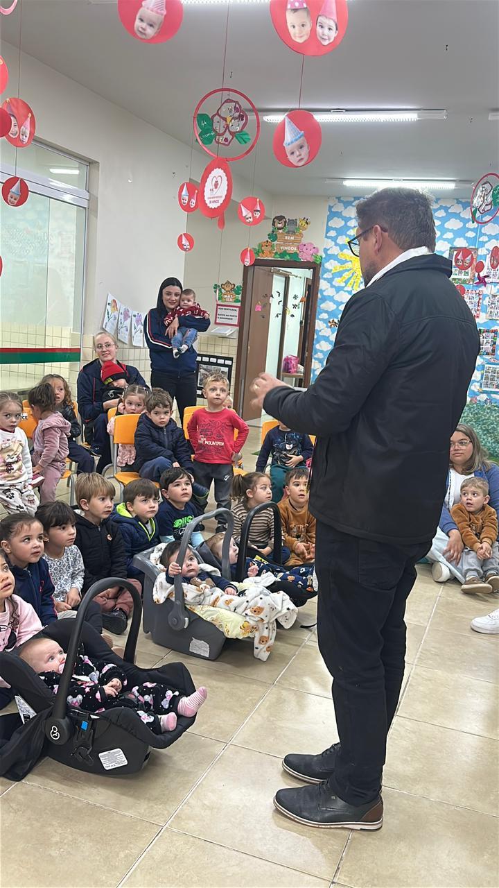 A celebração contou com a presença do prefeito, do secretário de Educação e de funcionários da pasta, além da diretora, professoras, demais colaboradoras da creche, de vereadores do município e do padre Luciano Toller, que realizou uma bênção com a oração do Santo Anjo e aspergiu água benta.