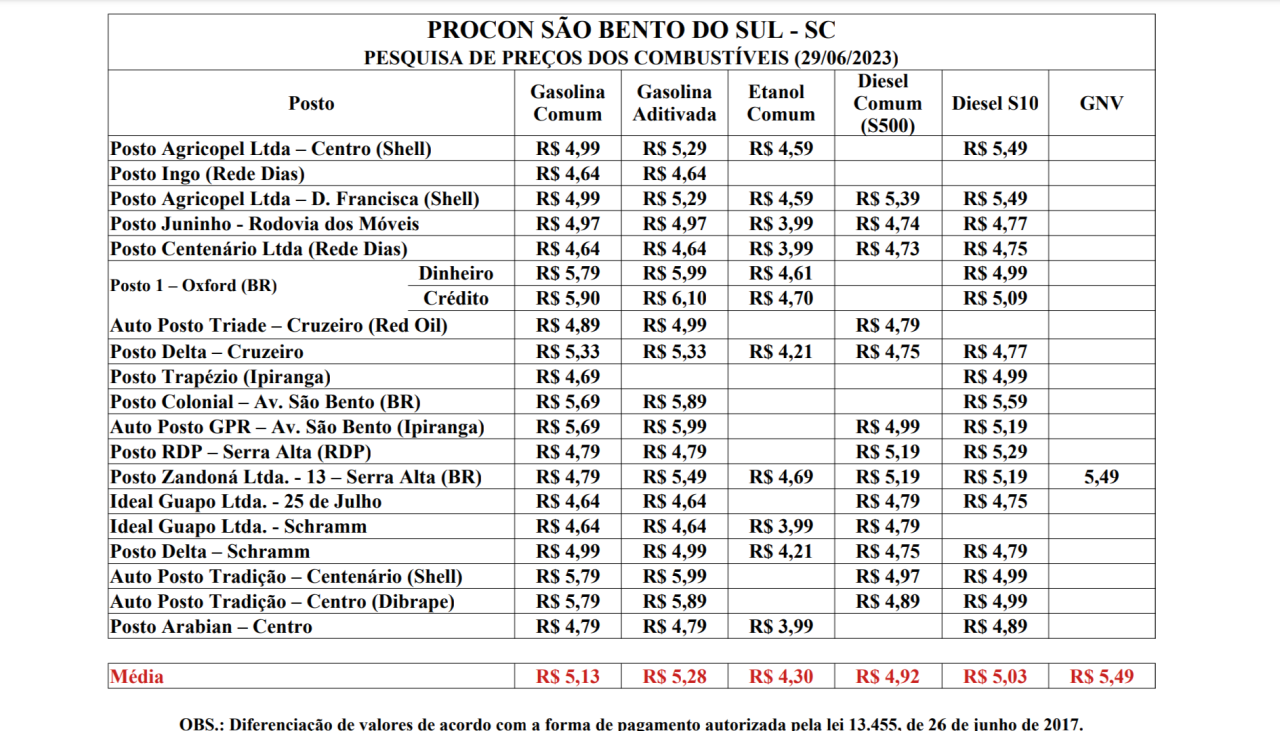 O Procon de São Bento do Sul divulgou nesta quinta-feira (29), pesquisa atualizada em relação ao preço dos combustíveis no município. Foram 19 postos de venda que receberam a vistoria.