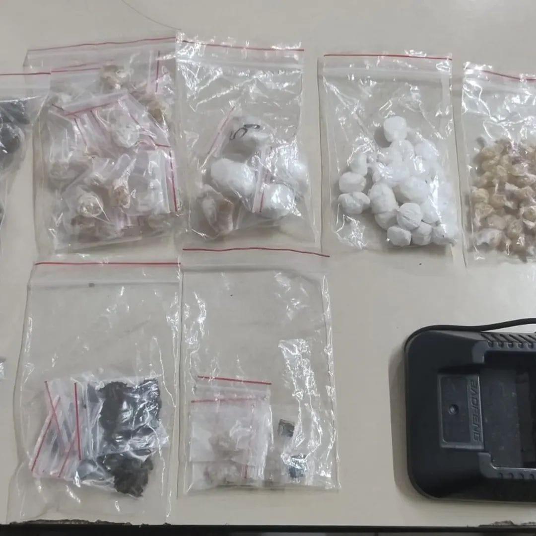 Na residência utilizada como ponto de tráfico foram apreendidos diversos entorpecentes, incluindo LSD, MDMA, cocaína, crack e maconha, além de um revólver calibre .38 com numeração raspada. O local também apresentava pichações com alusões a facções criminosas.